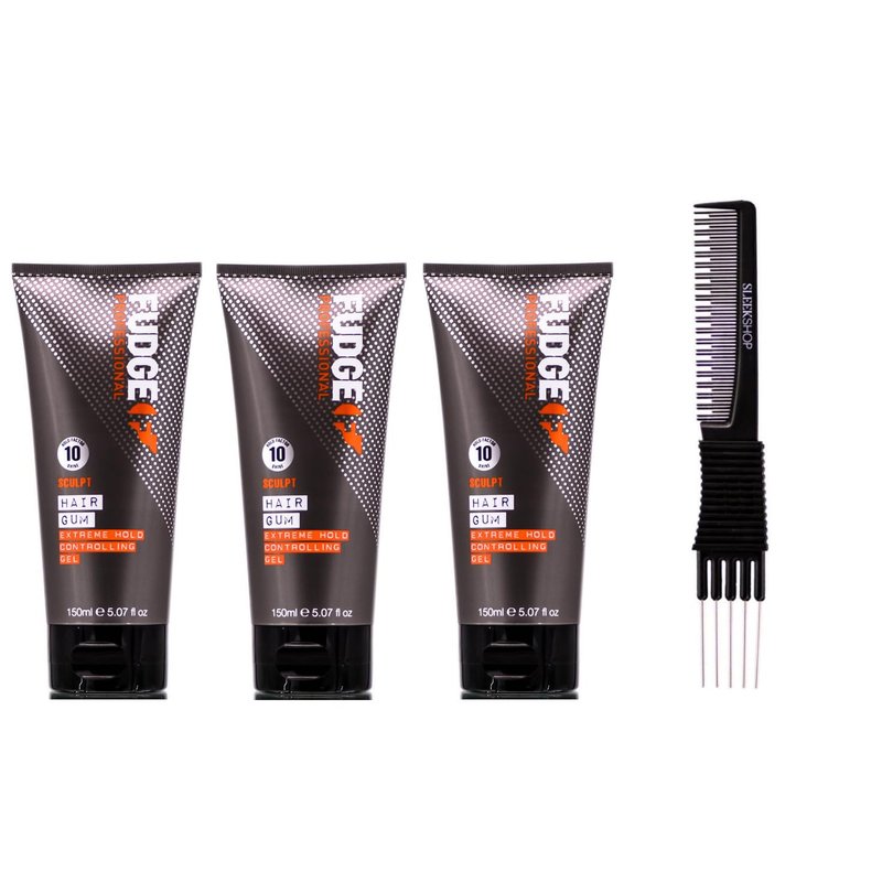 yper Fudge Style Hair Gum Extreme Hold Controlling Gel (5.07 oz) with Teasing Comb Pack of 3