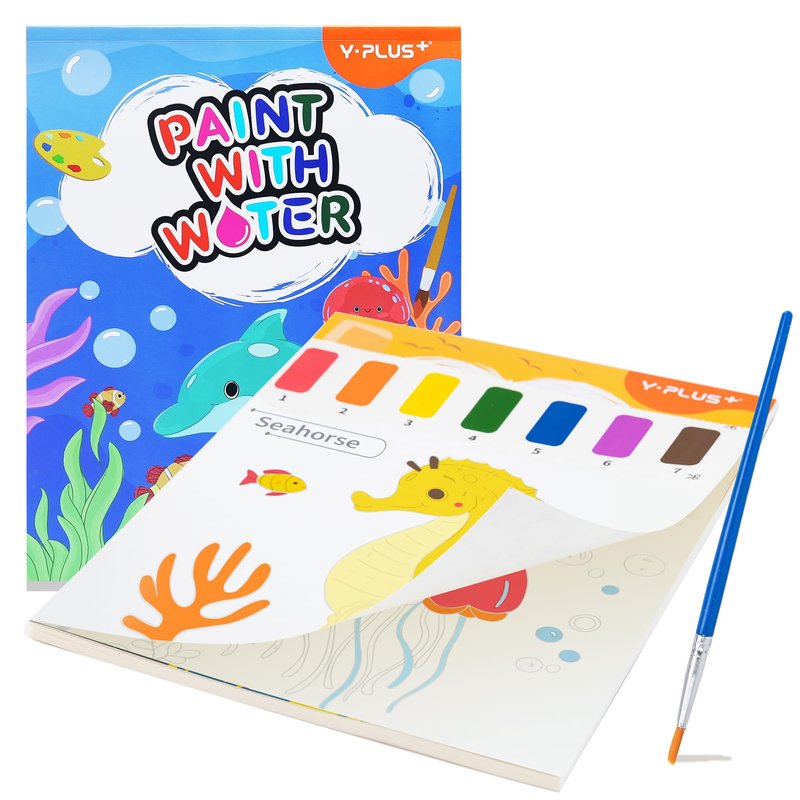 YPLUS Paint with Water Books for Toddlers, Watercolor Painting Paper for Kids Ages 1-3, 2-4, Art Craft Gift for Drawing with Brush - Sea