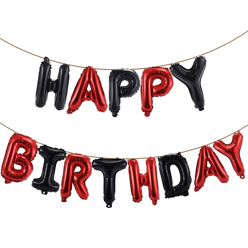 YPSelected Happy Birthday Balloons Banner 16 Inch Hanging Birthday Balloons 3D Silver Foil Letter Balloons for Kids and Adults Birthday Party Decorations Supplies (Red Black)
