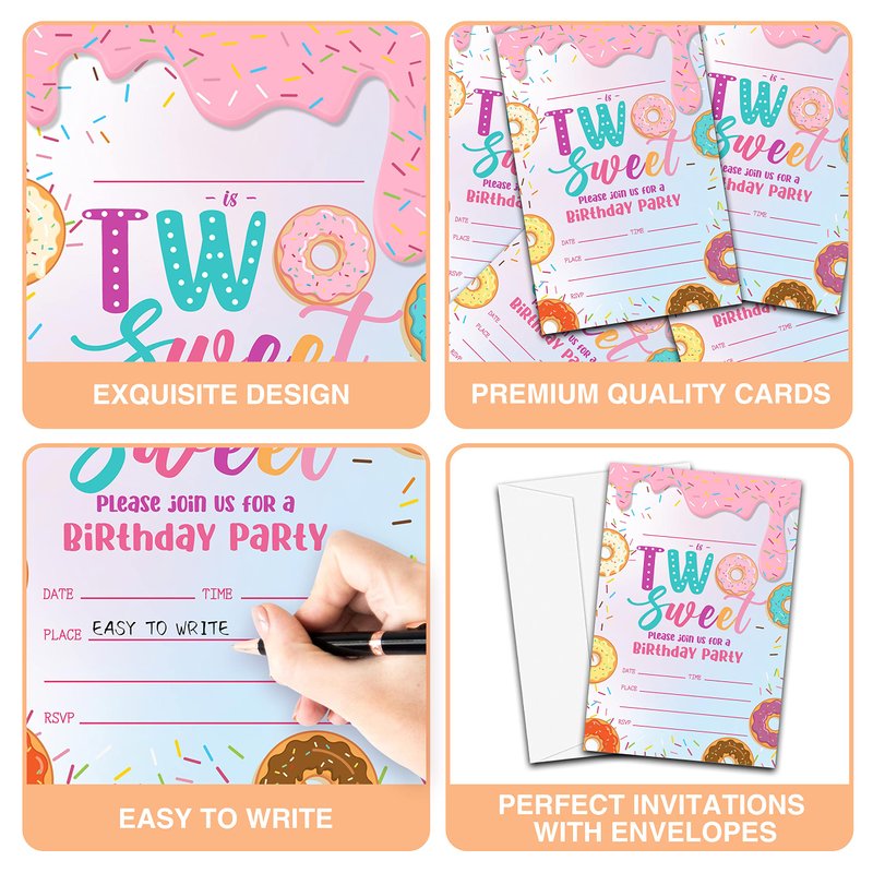 YQV Donut Sweet Two Birthday Party Invitations, 20-Count Donut 2nd Birthday Party Invites With Envelopes-HBYQK-B47