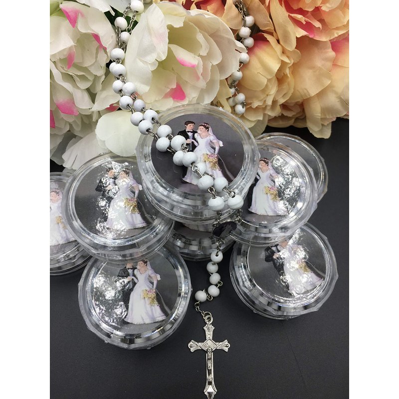 YRP Our Wedding / Nuestra Boda Wedding Guest Gifts Memories, White Rosaries 12 Party Pack