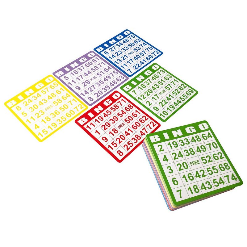 - Set of 100 mixed color bingo cards (hard cardboard)