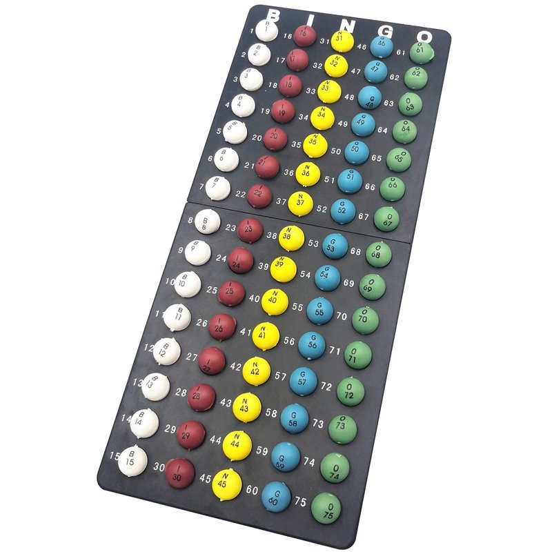 Includes 75 bingo balls, bingo cage and bingo board not included!Note: the bingo balls will come in plastic frames and you have to remove.