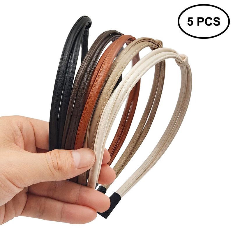 YuCool 5 Pcs Leather Headbands for Woman, Cute Knotted Fashion Headbands for Women Knotted Headband Non Slip Knot Thin Headbands Hair Styling Accessories Women Girls