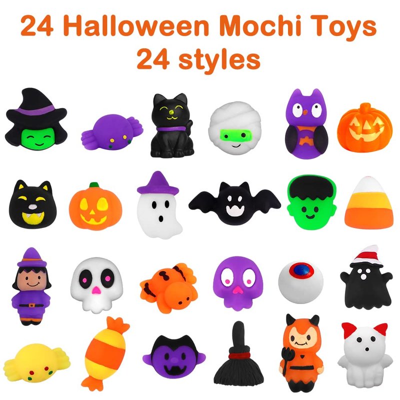 - Halloween design:These mochi squishies toy are eye-catching in color and cute in appearance, 24 different Halloween Styles design easy to attract boys and girls' attention and interest; black cat cauldron is easy for children to use kids. adding more color and vitality to Halloween .