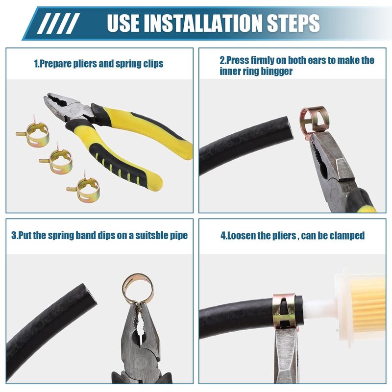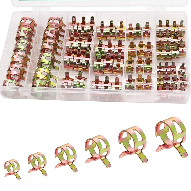- Packing List: You will receive a box of six different sizes of color-coated galvanized fuel hose clamps, seventy-two pieces in total. The kit contains twelve clips per size, with size classifications of 0.27"/0.39"/0.43"/0.55"/0.62"/0.66".