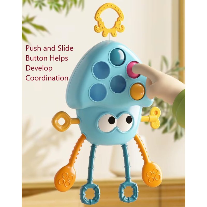 - [EARLY CHILDHOOD DEVELOPMENT] Help your little one develop his or her motor skills and hand eye coordination with interaction with a combination of the different colors, textures, shapes and sizes of objects on this unique toy. They will enjoy pulling strings, pushing and sliding buttons, and playing with the octopus character.