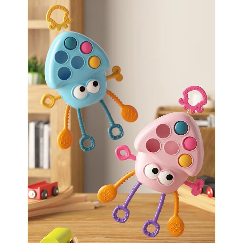 Yummy Baby Montessori Sensory Toy for Babies, Silicone Pull String Teething Toy, Perfect for Entertaining Baby While Developing Motor and Sensory Skills (Blue Octopus)