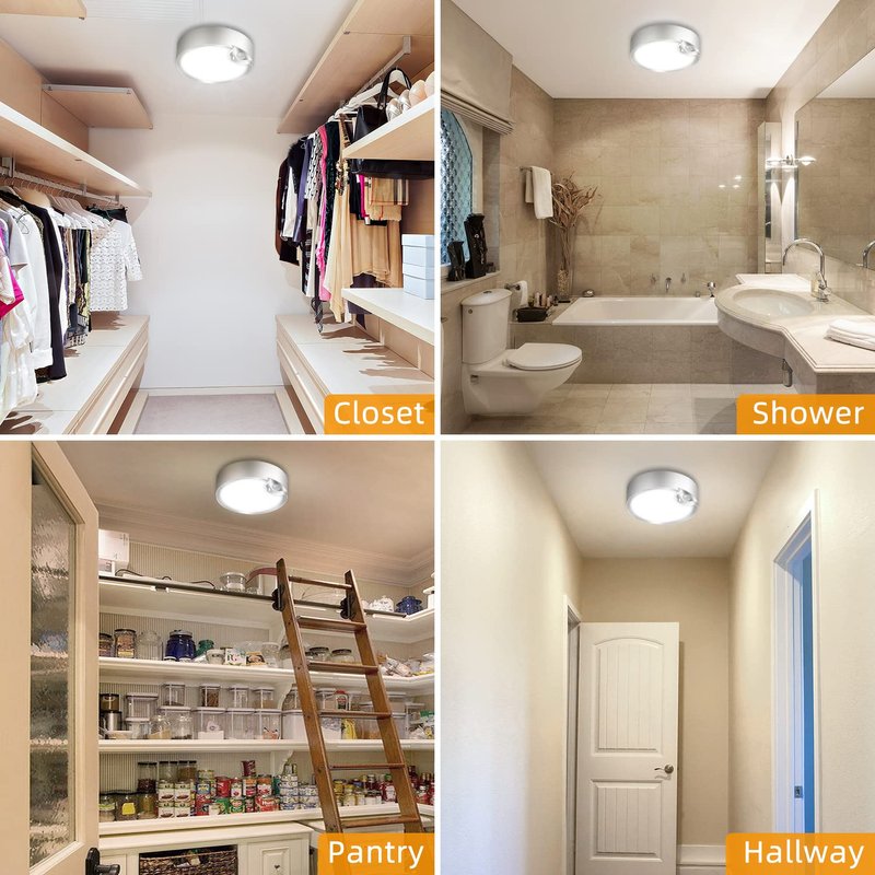 - 【Wide application】Battery powered motion sensor lights are great for space lacking light such as closets, stairs, storage rooms, basements, hallways, sheds, laundry rooms, bathrooms, etc.