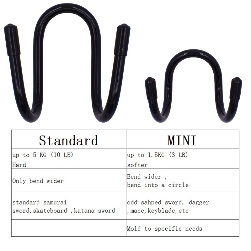 Adjustable – The rack is adjustable . You can bend the arms to create more or less space which fits the thickness of your sword, and adjust the width so the rack can grab the sword more securely.