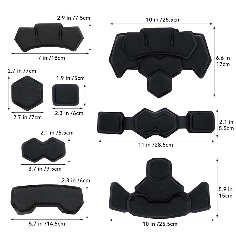 Product Specification:►Material:High quality EVA foam material►Weight: About 155g►Color: As the pictures shown, all balckFeature:- Helmet Pads USE high quality EVA foam material, soft and durable, providing maximum comfort and stability- Easy to install and Remove.Double-layer design, Upper cushioning structure, Bottom support structure. Make you feel soft and comfortable- Decent Comfort: To replace the worn out or missing pads in your helmets to ease some pressure off your temples.-Widely Use: Perfect for Airsoft Fast, CS, ACH, Mich, FMA, USMC, PASGT helmet, Star Wars helmet, Kylo Ren helmet, motorcycle bike helmet, football helmet, 3D printed helmet, custom cosplay helmet.The helmet Pads are universal fitWarm Tips:1. Make sure surface is clean (Recommend using rubbing alcohol)2. Make sure surface is smoothPackage List:Helmet Padding Replacements with Hook&Loop