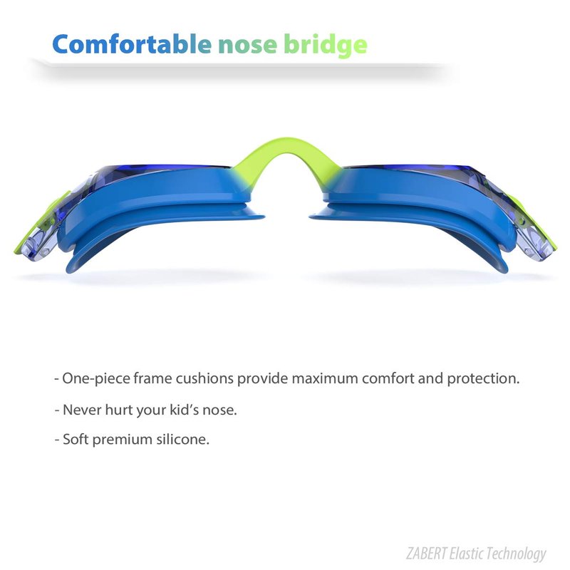 ZABERT 3-Pack K20 Kids Swim Goggles, Swimming Goggles for Kids Toddler Youth Girls Boys Junior Jr Childrens Child Little Baby Age 3 4 5 6 7 8 9 10 11 12 Years Anti Fog Blue Yellow Green Pink Clear