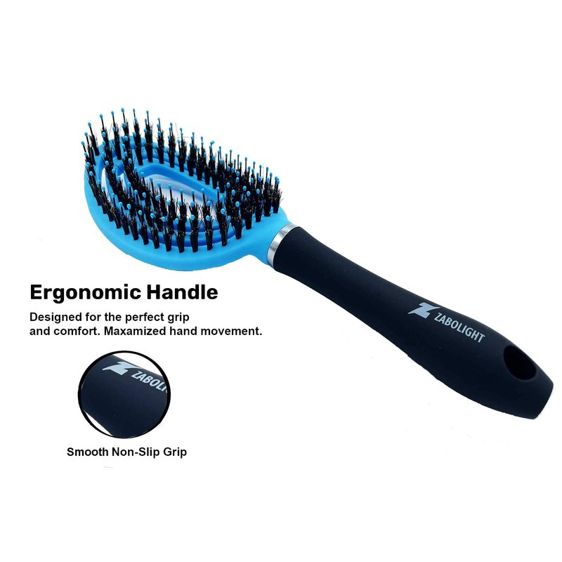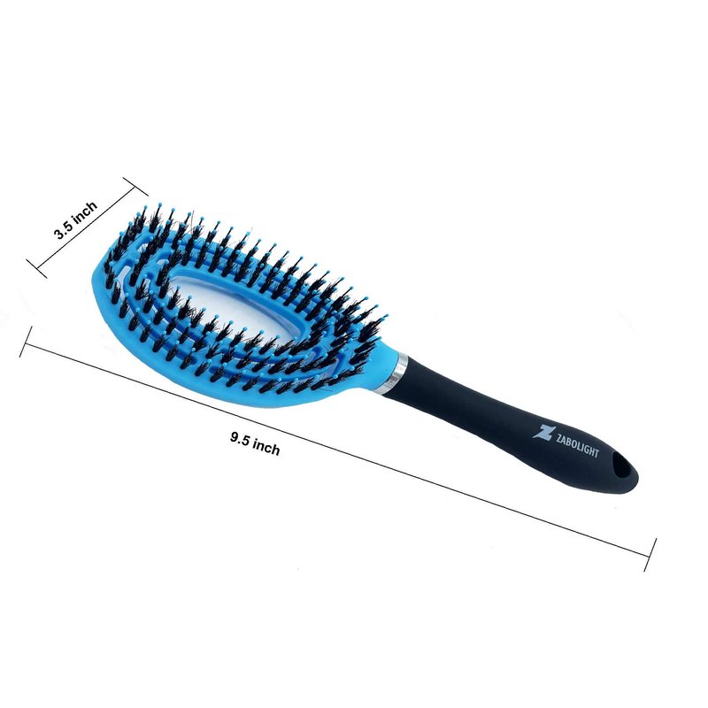 The Zabolight Boar Bristle Hairbrush: ☑️ PREMIUM BOAR BRTISLE HAIRBRUSH: The Zabolight Hairbrush brings amazing craftsmanship into one brush. Natural boar bristles help clean your scalp of excess hair, dust, and dandruff. Help retain hair and improve hair growth. ☑️ VENTED CONSTRUCTION: Designed to allow air to pass through the brush with quick blow-drying time and styling. Vented design allows this with wet or dry hair. ☑️ LIGHTWEIGHT: Super lightweight design for fast movement and ease of use. Oversize design holds more hair and lets you style how you want! ☑️ FUNCTIONAL RUBBER HANDLE: Non-slip rubber grip conforms to your hand for more control and comfort with wet or dry hair.☑️ CIRCLE DEISGN: The Zabolight Hairbrush flexes to the shape of your scalp and head. Allowing each bristle to smoothly go through your hair. Stimulating healthy hair and massaging the scalp all at once.