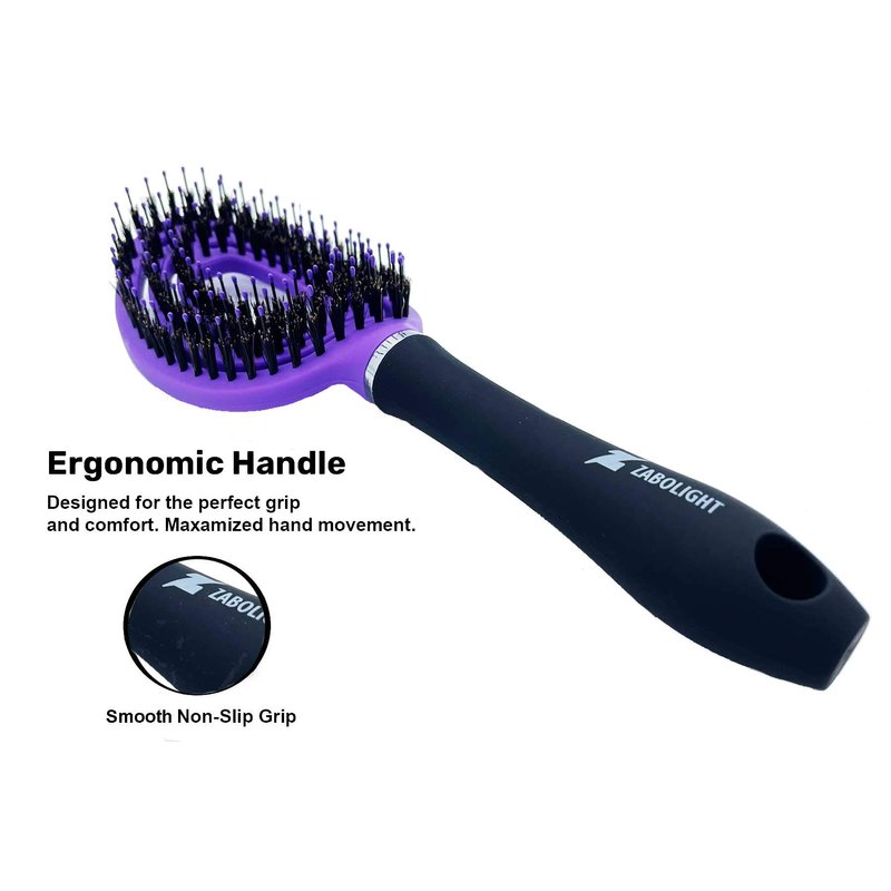 The Zabolight Boar Bristle Hairbrush: ☑️ PREMIUM BOAR BRTISLE HAIRBRUSH: The Zabolight Hairbrush brings amazing craftsmanship into one brush. Natural boar bristles help clean your scalp of excess hair, dust, and dandruff. Help retain hair and improve hair growth. ☑️ VENTED CONSTRUCTION: Designed to allow air to pass through the brush with quick blow-drying time and styling. Vented design allows this with wet or dry hair. ☑️ LIGHTWEIGHT: Super lightweight design for fast movement and ease of use. Oversize design holds more hair and lets you style how you want! ☑️ FUNCTIONAL RUBBER HANDLE: Non-slip rubber grip conforms to your hand for more control and comfort with wet or dry hair.☑️ CIRCLE DEISGN: The Zabolight Hairbrush flexes to the shape of your scalp and head. Allowing each bristle to smoothly go through your hair. Stimulating healthy hair and massaging the scalp all at once.