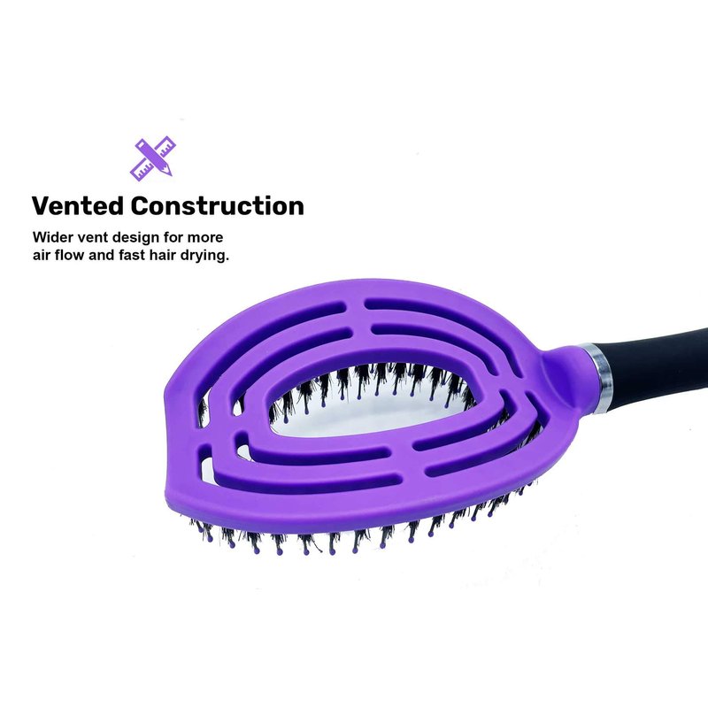 Zabolight Detangling Flex Brush Natural Boar Bristle Hair Brush for Kids, Women, and Men - Detangle All Hair Types Wet Or Dry (Purple)