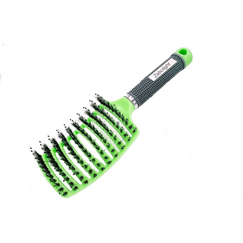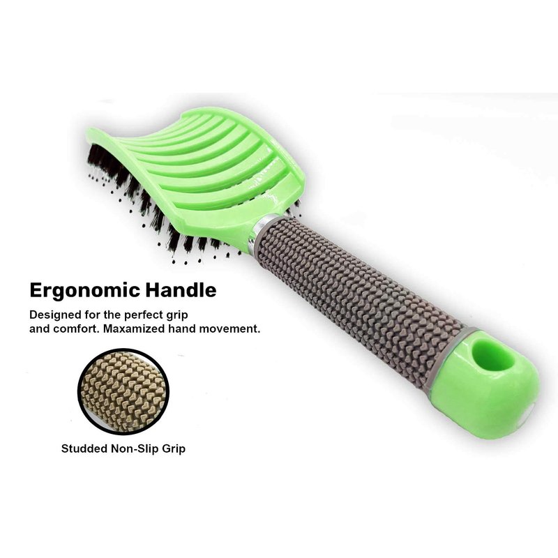 Zabolight Premium Vent Boar Bristle Hair Brush Vented Detangling Oversize Hair Brush for Thick Long Curly Hair, Curved Fast Blow Drying Brush for Women & Men (Green)