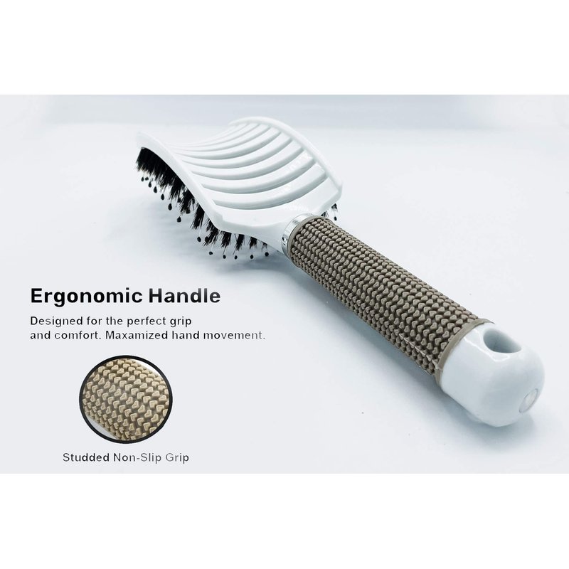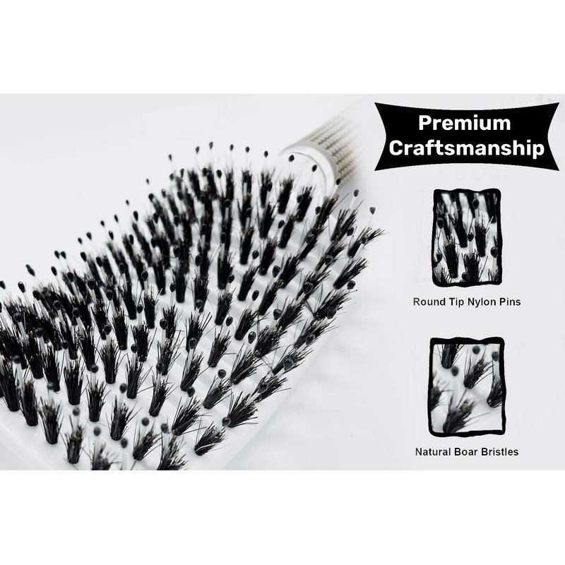 Designed to help natural oil blend into the scalp everyday. Which is the best and most effective natural conditioner. The scale structure of boar bristles is similar to human hair and can help spread natural oil from the scalp to the tail of hair. Main Improvements: ☑️ PREMIUM BOAR BRTISLE HAIRBRUSH: The Zabolight Hairbrush brings amazing craftsmanship into one brush. Natural boar bristles help clean your scalp of excess hair, dust, and dandruff. Help retain hair and improve hair growth. ☑️ VENTED CONSTRUCTION: Designed to allow air to pass through the brush with quick blow-drying time and styling. Vented design allows this with wet or dry hair. ☑️ LIGHTWEIGHT: Super lightweight design for fast movement and ease of use. Oversize design holds more hair and lets you style how you want! ☑️ FUNCTIONAL RUBBER HANDLE: Non-slip rubber grip conforms to your hand for more control and comfort with wet or dry hair.☑️ CURVED DEISGN: The Zabolight Hairbrush flexes to the shape of your scalp and head. Allowing each bristle to smoothly go through your hair. Stimulating healthy hair and massaging the scalp all at once.