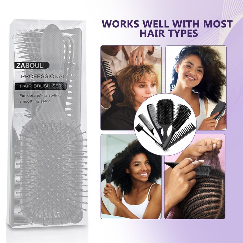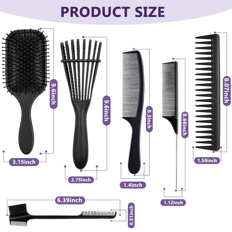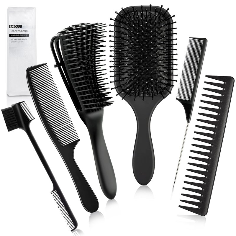 - โ 6 ๐ฃ๐ฐ๐ ๐๐๐ฟ๐น๐ ๐๐ฎ๐ถ๐ฟ ๐๐ฟ๐๐๐ต ๐ฆ๐ฒ๐: ZABOUL Detangling Brush Set includes 1 x adjustable detangling brush, 1 x original detangling hair brush for women, 1x wide tooth comb, 1 x double sided edge brush, 1 x rat tail comb,1 x Conventional comb .Professionally designed hair brush glide through knots and tangles and reduce catching and dragging.