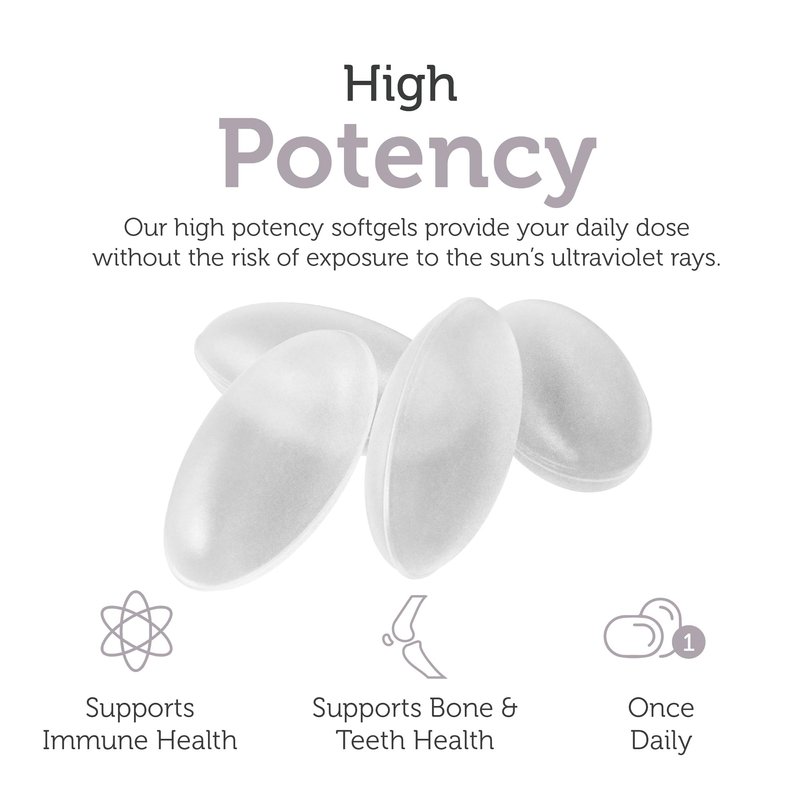 - BONE & TEETH SUPPORT - Vitamin D is an essential vitamin that helps support bone and teeth health in men, women and kids of all ages. Our high potency capsules provide your daily dose without the risk of exposure to the sun's ultraviolet rays.