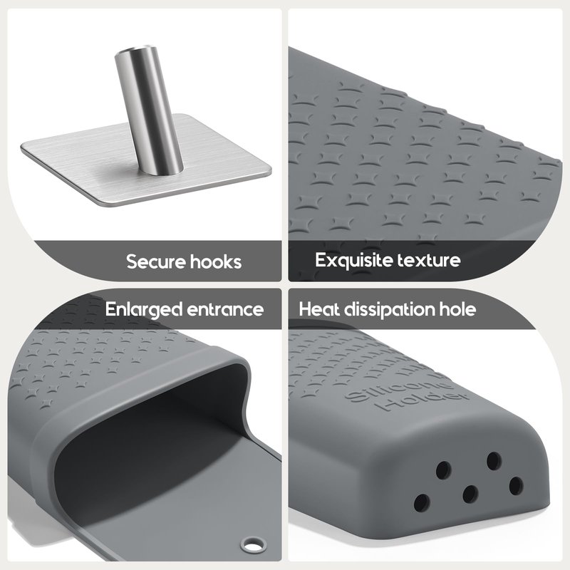- STAINLESS STEEL HOOK: It can always fix the silicone holder in the place you want and never fall off.