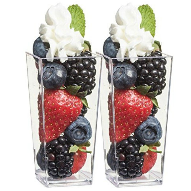 These petite dishes brought to you by ZappyTM are versatile and visually appealing. Their uses are boundless. Appetizer trays, single servings, and small proportions are instantly enhanced when presented in these elegant designs. Use them for relish, petit fours, cocktails, hors d'oeuvres, desserts, pastries, fruit compote, cake squares etc. Get Creative!! Perfect for use as shot cups, mini desserts, appetizers, dips, snacks and more....Great for any party or wedding Event !!