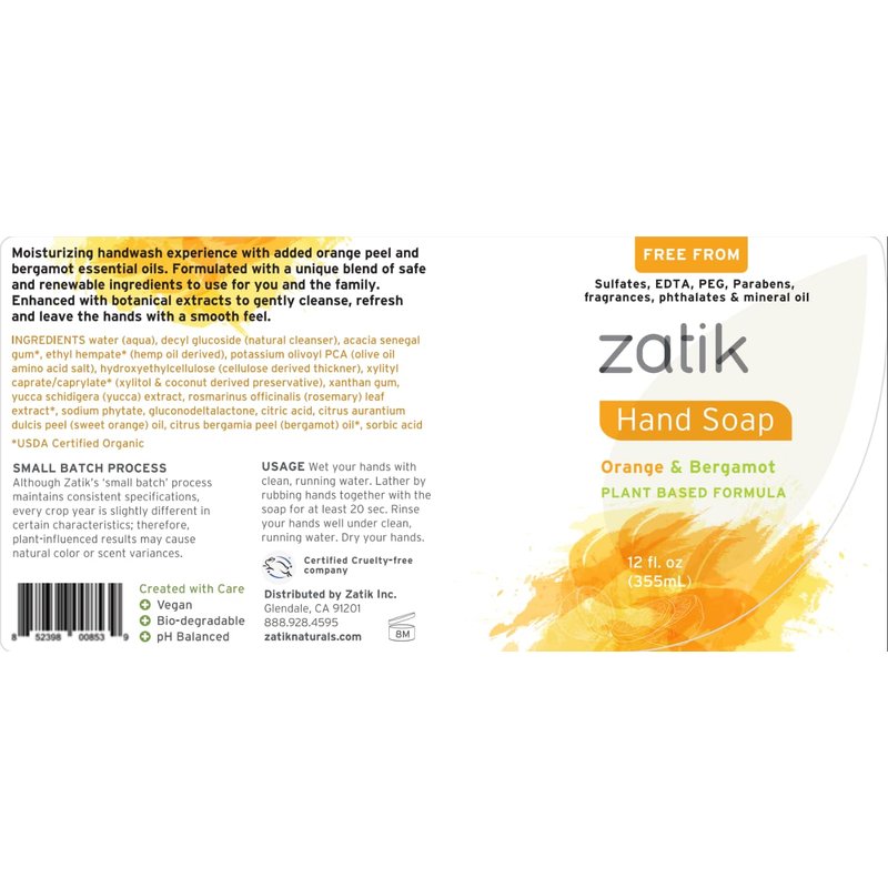 Zatik Naturals - Liquid Hand Soap - Orange & Bergamot Moisturizing Handwash, 12 oz (Pack of 1)
