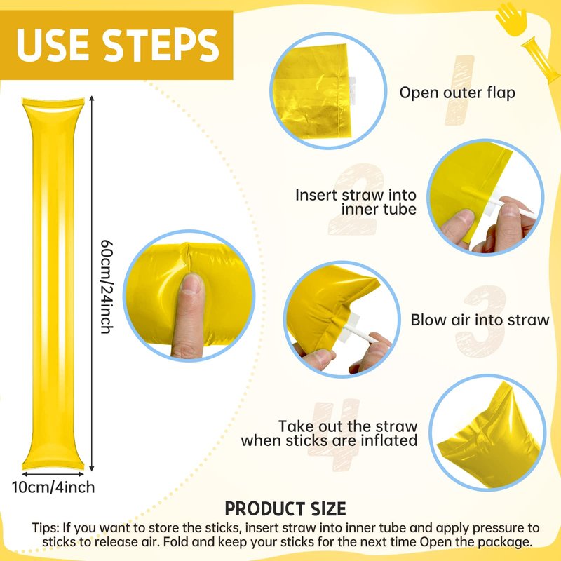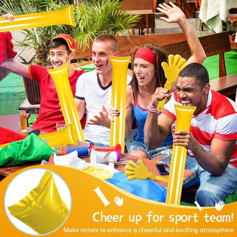 - Perfect combination:you will get package comes with a total of 24 cheering props,including 12 hand clappers and 12 thunder sticks in Sunburst Yellow color,enough quantity for sharing with your family and partners; suitable for parties, carnivals, sports games and more, they can enhance the happy atmosphere