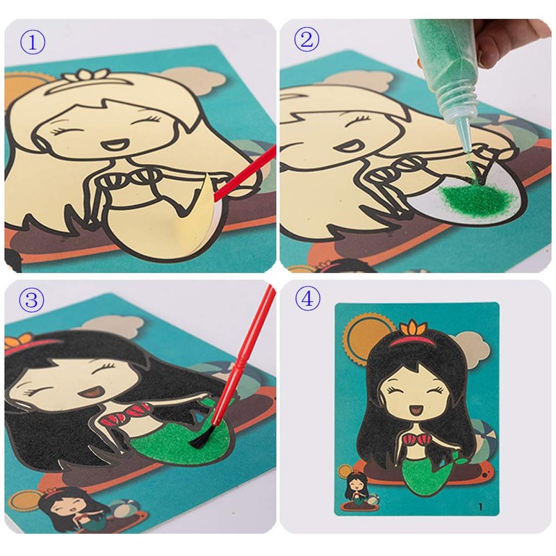 - Colored sand is the perfect medium for countless kid-friendly craft projects!Children can develop their imagination by matching colors according to the patterns of the sand art picture cards.