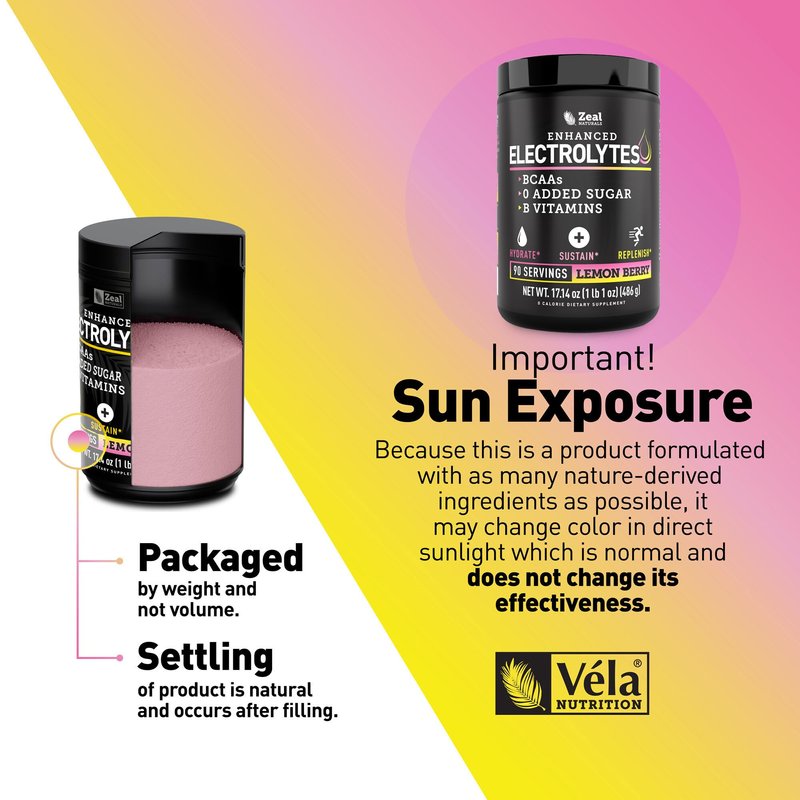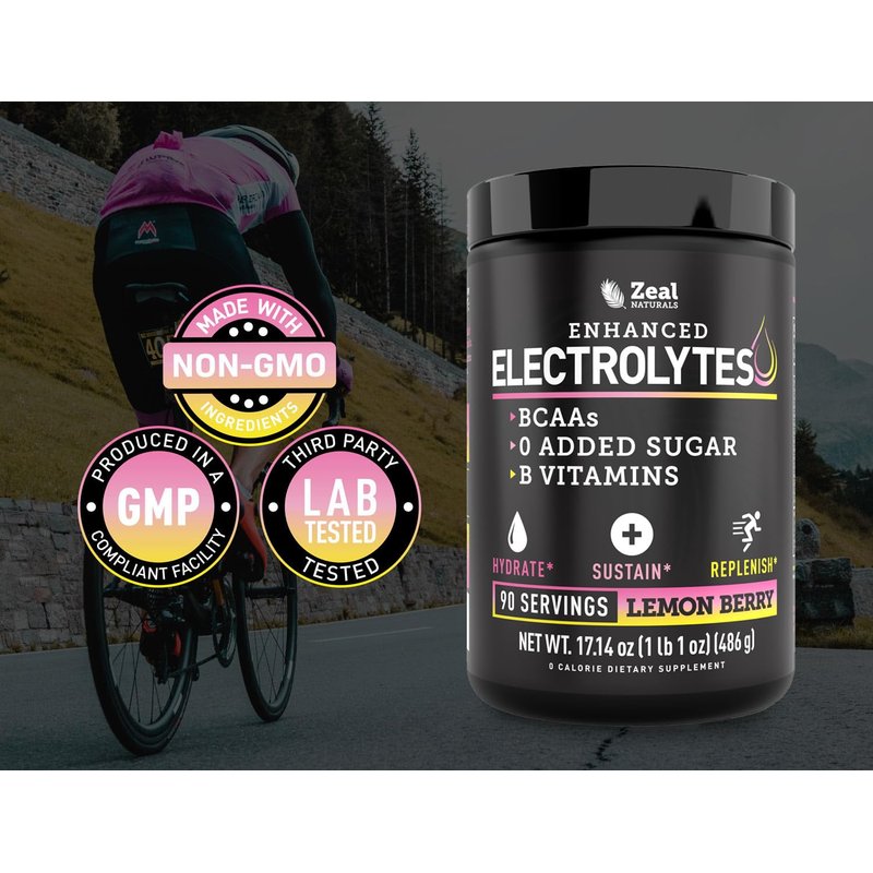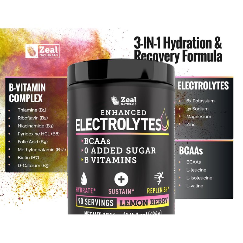 Zeal Naturals Electrolyte Powder Recovery Drink (90 Servings | Lemon Berry) w/ 0 Sugar +BCAAs +B-Vitamins Electrolyte Supplement w Potassium Zinc & Magnesium for Hydration - Keto Electrolytes