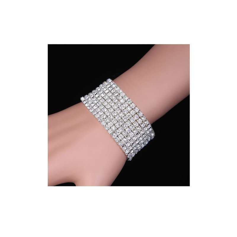 Zealmer Women Clear Rhinestone 8 Row Stretch Bracelet Silver Tone(small)