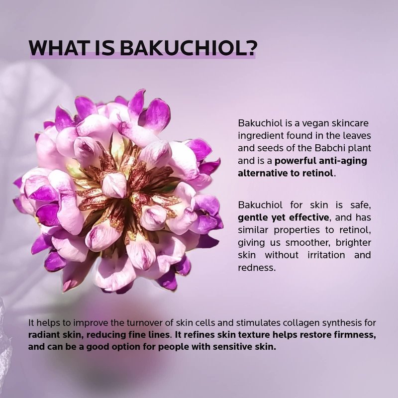 - Bakuchiol Retinol Alternative: Bakuchiol is a Botanical Retinol. Well known for all of the same powerful potency with retinol but more gentle for sensitive skin (not irritation and damage). Bakuchiol cream is an all natural, organic anti aging cream, powerful for anti wrinkle, skin firming, fading the appearance of sunspots, discoloration, redness, and hyperpigmentation
