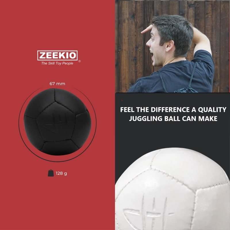 Zeekio - Josh Horton Pro Series Juggling Balls - Professional - for All Levels & Ages- Millet Filled - 12 Panel Synthetic Leather Ball Durable - 128 Grams 67mm Wide - Set of 3 Black