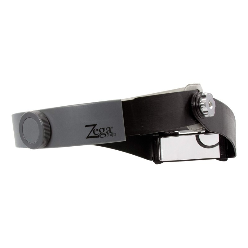 - The Zega headband magnifier provides three acrylic, multi-depth, magnifying lenses, each with a rigid coating designed to protect against cracking. Two of the lenses offer 1.5X magnification and the third offers 7X magnification, providing magnifying intensities at multiples of 1.5, 3, 8.5 and 10.