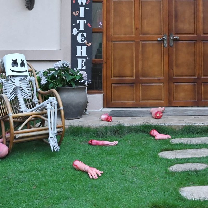 ZeHuoGe 5 PCS Halloween Bloody Body Parts Hands Foot Leg Set Haunted Houses Stage Props Magic Tricks April Fools Props US Delivery