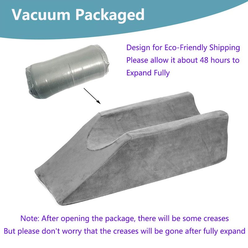 - Size: 19.29*7.87*5.91 inch/49*19.99*15 cm(L*W*H). 【Note】1. This Elevation Pillow may not fit for large legs, please refer and compare to the sizes. 2. Design for Eco-Friendly Shipping, Please allow it about 48 hours to Expand Fully.