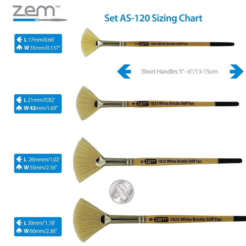 ZEM BRUSH White Hog Bristle Stiff Fan Brush Set Size 2,4,6,8