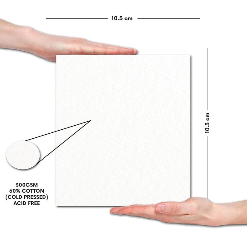 - Square Size (10.5 cm x 10.5 cm), 300 GSM 60% cotton Cold pressed Expert Watercolor Paper Glued Sketch Padbook - (24 Sheets) 48 Pages(Archival Quality) for Painting your beautiful Memories.