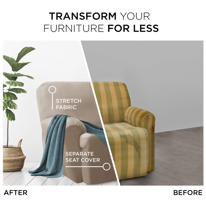 - TRANSFORMS THE LOOK OF YOUR RECLINER FOR LESS: The Stretch Plush Recliner Slipcover instantly refreshes your room décor and saves you from the expense of new furniture; ideal for updating and protecting your furniture for work from home needs