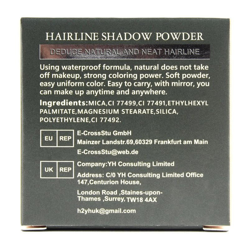 - Temporary Hairline Colour Powder : Our hair powder stays on for 14 + hours, is sweat-proof, wind-proof, and has a strong colouring power of ultra-fine powder that blends perfectly with your natural hair colour. It is made from safe, all-natural ingredients that will not damage the nature of your hair. It can be washed with water or daily shampoo