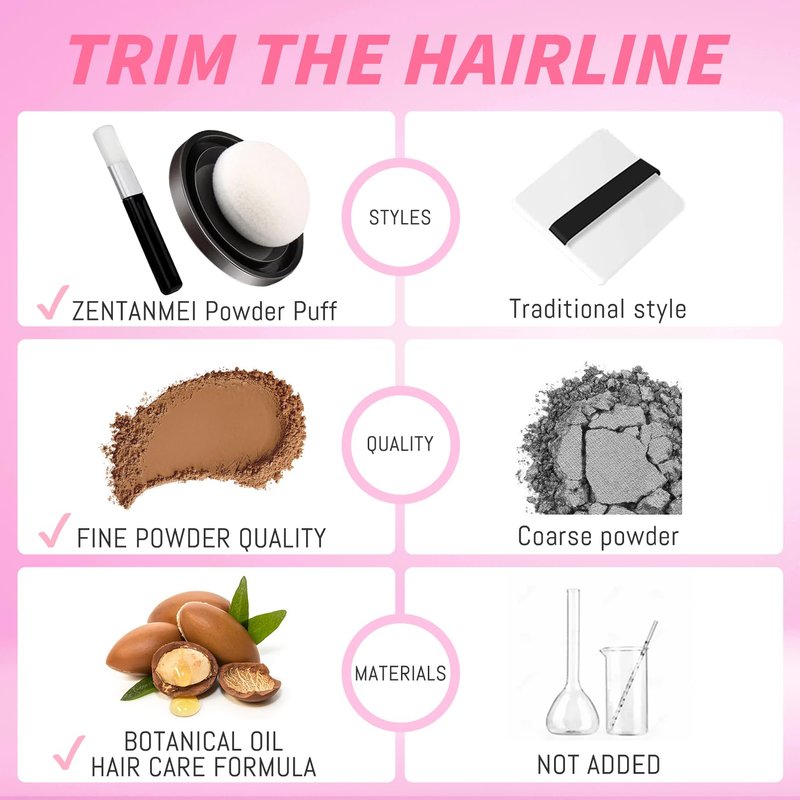 - Simple Steps To Use: Open the box, take out the puff and dip it into the hairline powder; apply the hairline powder to the roots of the hair; you can apply a small amount of the powder several times for a more natural look.