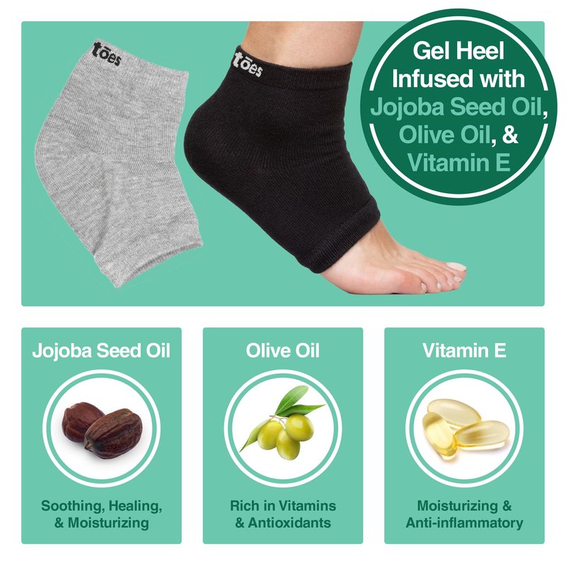 - Vitamin Infused - The gel lined heel is infused with jojoba seed oil, olive oil, and vitamin E to deeply moisturize and hydrate dry, rough skin. Pair with your favorite lotion, cream, aloe or foot balm for ultimate hydration during your relaxing, at home pedicure.