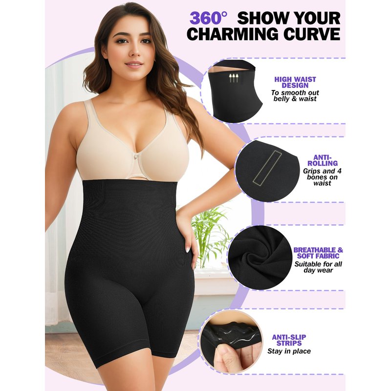 - 🌟【Tummy Control Thigh Slimmer Shapewear】The high waist shapewear for women tummy control is designed with innovative soft flex boning and anti-allergic silicone grips in the waist area to prevent from rolling down, makes it super comfy. Butt lifting shapewear fits like second skin even with all bending, moving, dancing, body shaper for women tummy control stays in place and not had to pull up or often readjust. Besides, the under shorts are aslo perfect for anti-chafing.