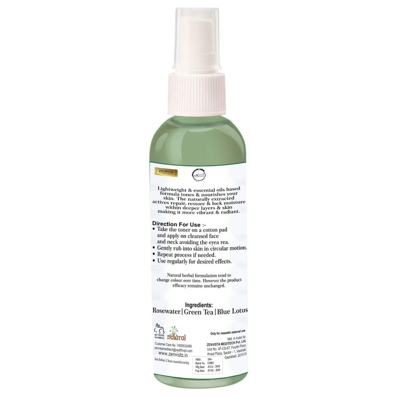 Alcohol free blend of Green Tea And Lotus . Its helps in retaining moisture, & tones the skin, helps reduce open pores.Free from alcohol, this toner has nourishing & toning properties. Major Benefits: Firms & tones the skin and helps reduce open pores.Ideal for oily and combination skin.Can be used 2-3 times a day.