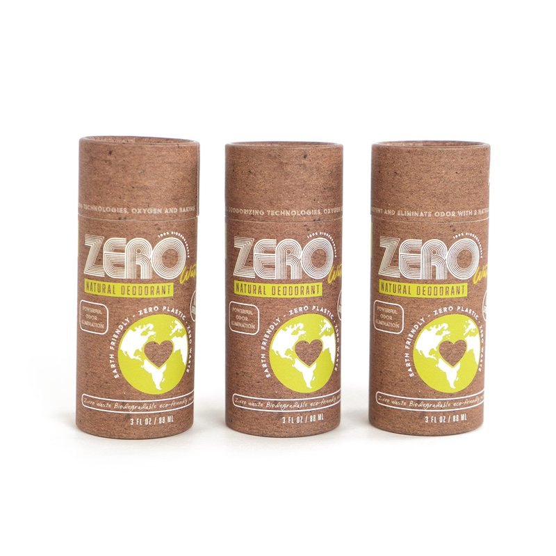 ZERO Waste Dual-Strength Natural Deodorant 100% Biodegradable, Earth-Friendly, Cardboard Push-up Tube, Plastic Free, Compost Friendly