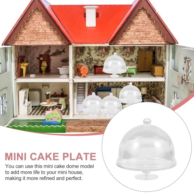 Zerodeko 10PCS Dollhouse Mini Cake Plate with Lid, Plastic Cupcake Stand Dome Cover, Clear Small Cake Display Stand for Dollhouse Kitchen Party Supplies Accessories 1 12 Scale