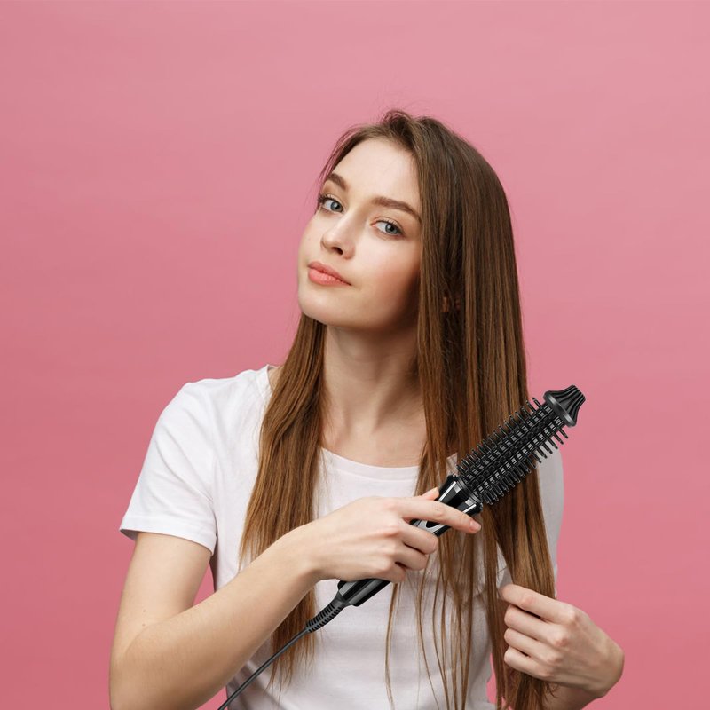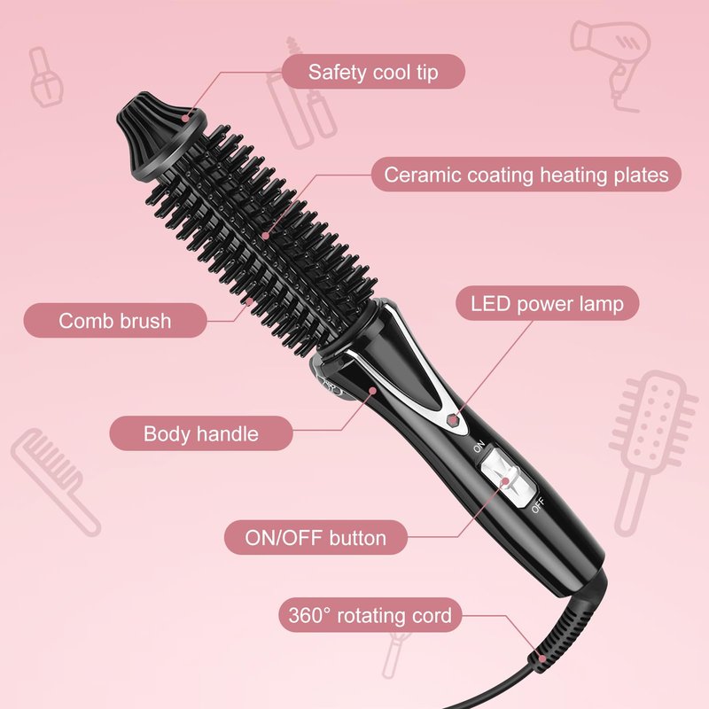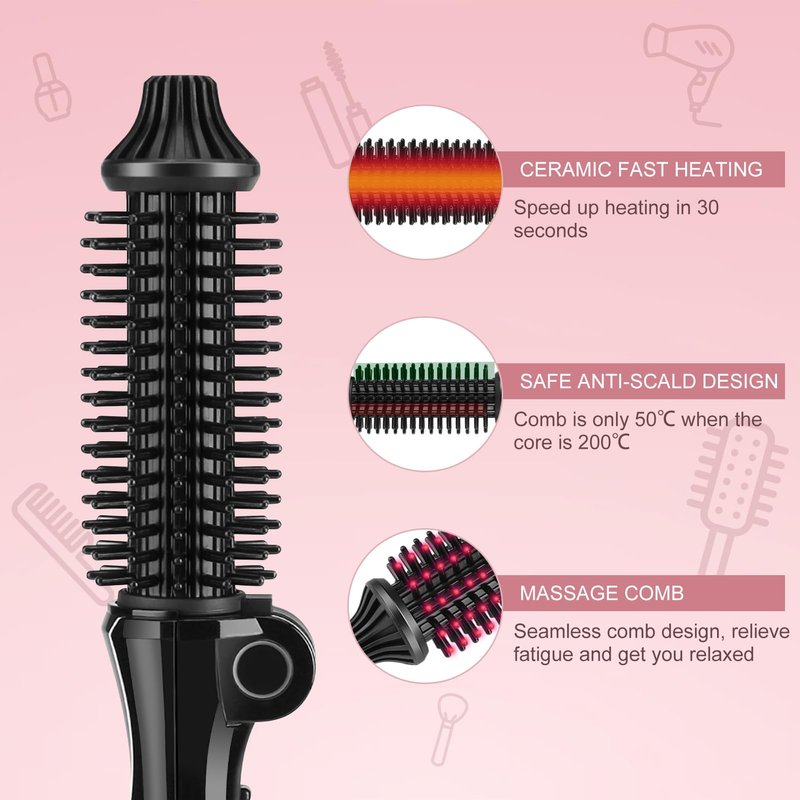 Zerone Curling Iron Brush, Ceramic Tourmaline Foldable Anion Hair Brush, Curling Iron 200C, Styling Tools Foldable Hair Brush (EU, US Plug 110-240V), 18 x 9.5 x 8cm, 351g