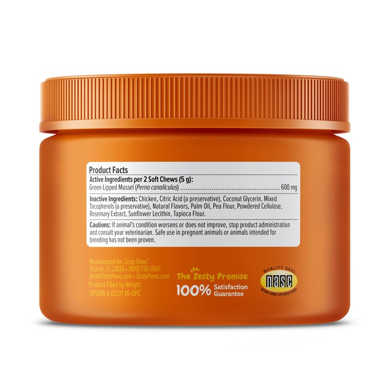 It's only natural that you'd want to support your pup's joint health. Mussel Mobility Bites from Zesty Paws feature 500mg of cold-processed Green-Lipped Mussel sourced exclusively from New Zealand. As a naturally occurring source of glycosaminoglycans and mucopolysaccharides, these soft chews help maintain healthy joint function to keep the pep in your dog's step.