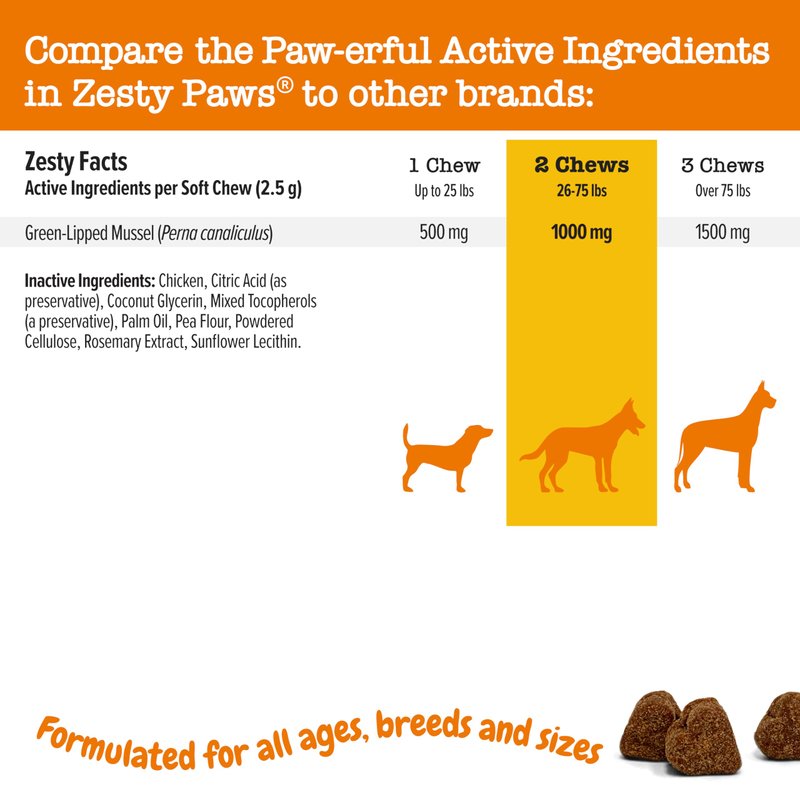 Zesty Paws Mussel Mobility Bites for Dogs - New Zealand Green Lipped Mussel with Natural Glucosamine & Chondroitin + Omega-3 Fatty Acids - Hip & Joint Support Supplement Soft Chews – 90 Count