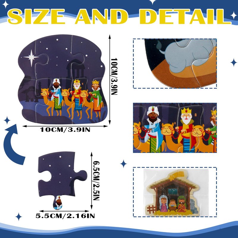 - Quantity and Style: each package comes with 48 pieces of Christmas puzzles, with 6 puzzle pieces in each pattern; This makes a good choice for family activities during the holiday season or for church gatherings, enabling little ones to partake in the festive atmosphere; Products are packaged individually to avoid confusion