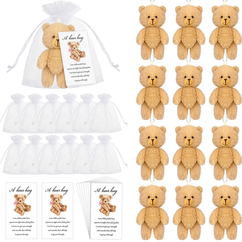 Zhanmai Set of 12 Mini Plush Smile Bears Gift Little Pocket Bear Inspirational Bear Hug Gift Card Organza Bags for Valentine's Day Class Baby Shower Birthday Graduation Party Favors